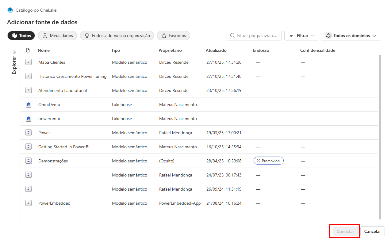 Choose: Select one or more sources, such as a Lakehouse or a Power BI Semantic Model.