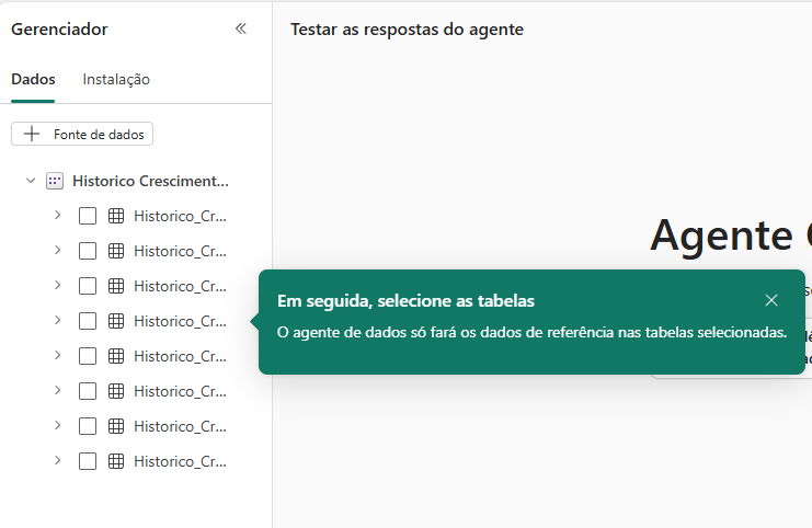 Select the AI Agent that will query Fabric.