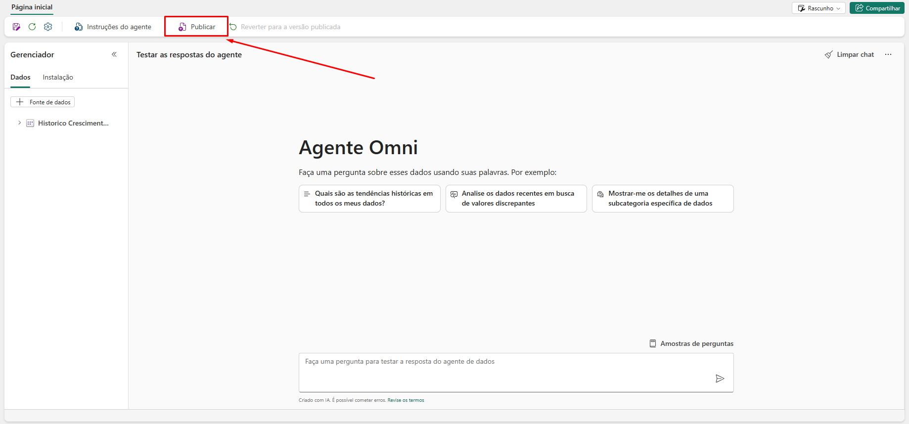 After publishing the Data Agent, click View publication details.