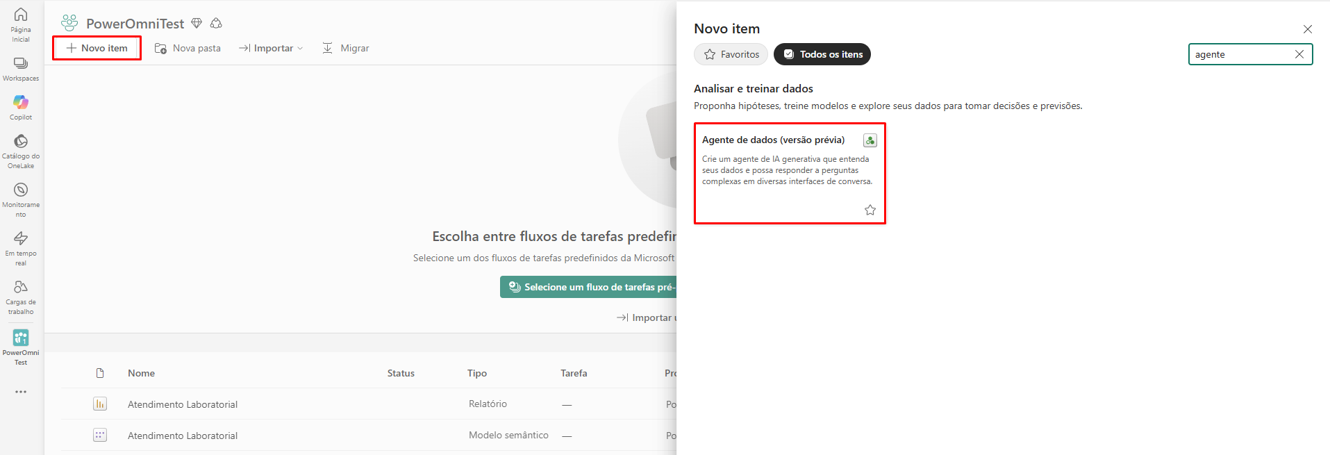 In your Fabric Workspace, click "+ New item" and search for "Data Agent".