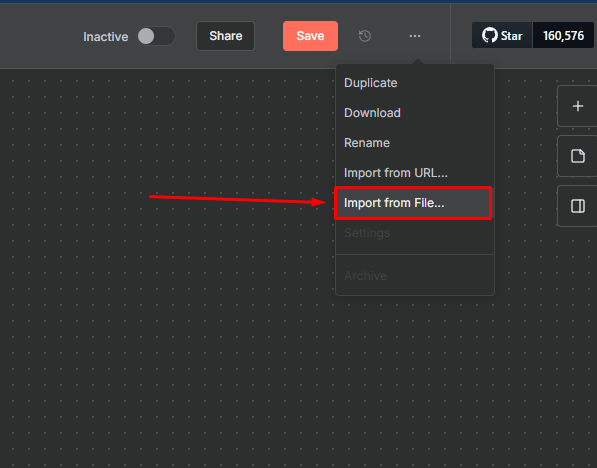 Import into N8N: Access your N8N instance and click Create Workflow.