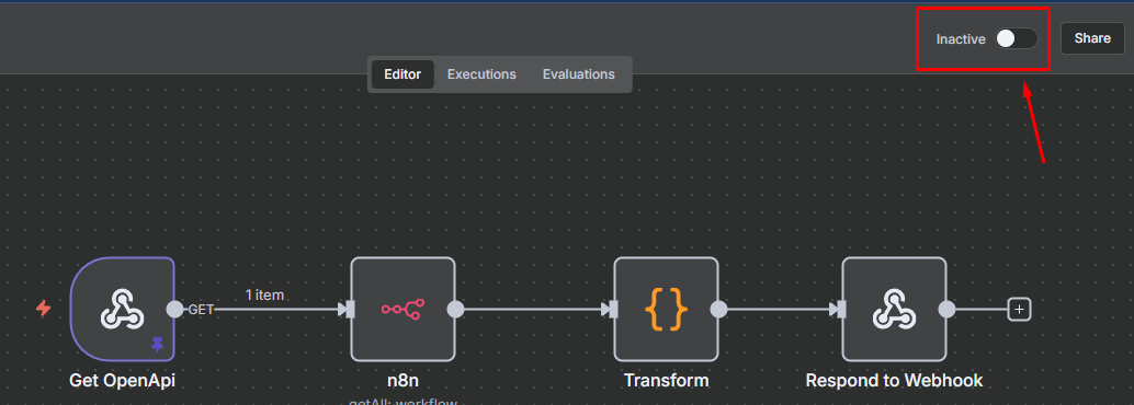 Locate the Get OpenApi node inside your N8N flow.
