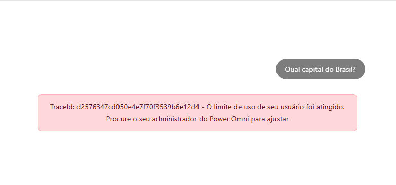 Automatic Blocking: When the limit is reached, the user will receive an error message immediately after attempting to send a message, informing them that the usage limit has been reached. Access to AI functionality is automatically blocked for the entity in question and is restored at the beginning of the next month.