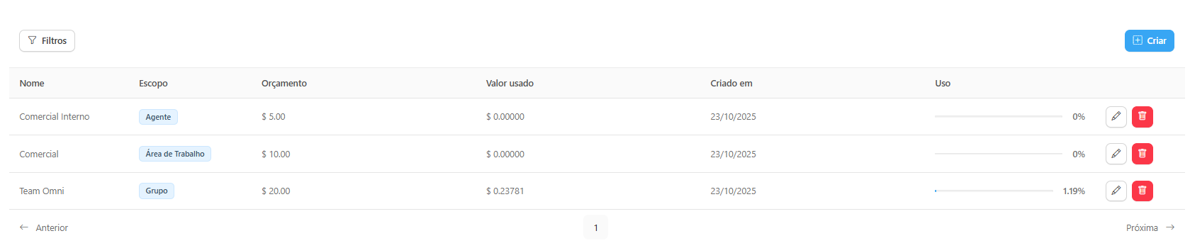 To optimize and precisely manage consumption, Power Omni allows segmented budgets to be applied. These budgets ensure specific and detailed control over token spending by areas or individuals.