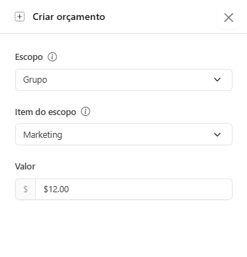 To configure a budget for a specific permission, click the Blue Icon and select the scope (User, Agent, Group, or Workspace) and the limit value (USD).