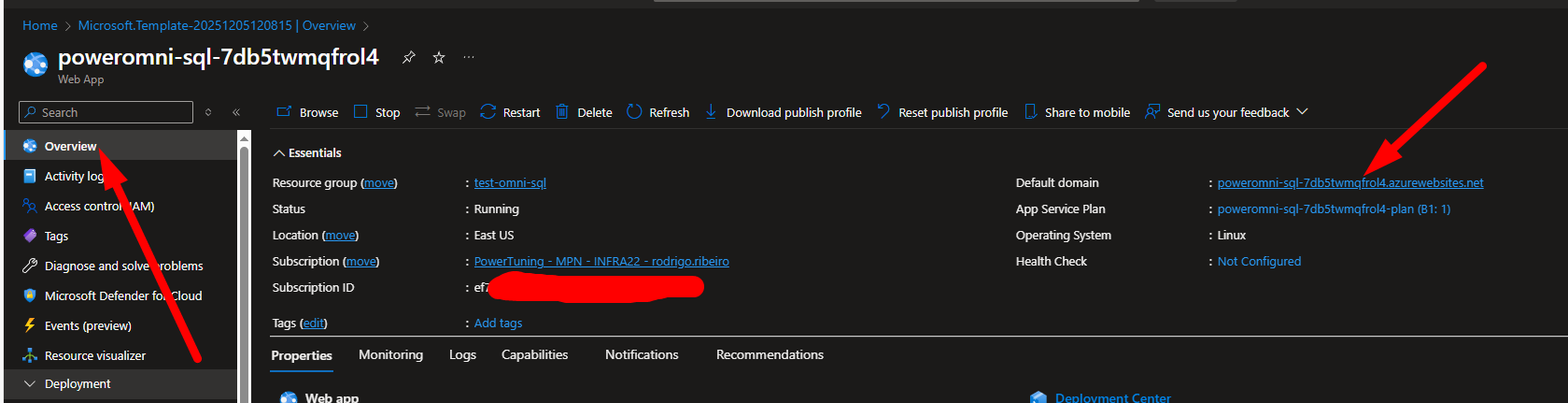 Accessing the overview screen, you will be able to obtain the URL of your API. Click on it to check if the deployment has already been completed:
