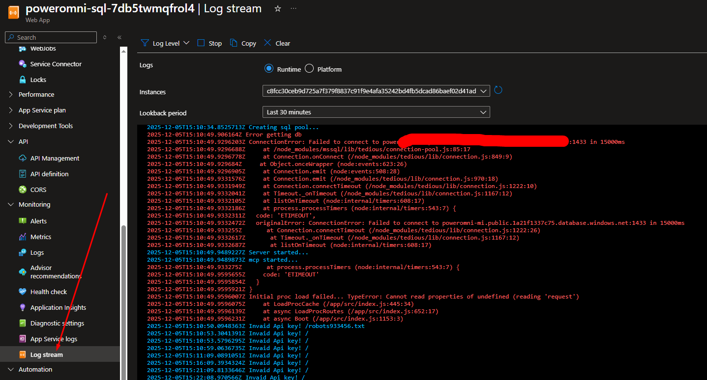If "Unauthorized" appears, it means the deployment was successful. If it takes too long to load or another error appears other than the authorization message, it may still be deploying or an error may have occurred. You can try debugging through the App Service logs or request support from Power Omni.