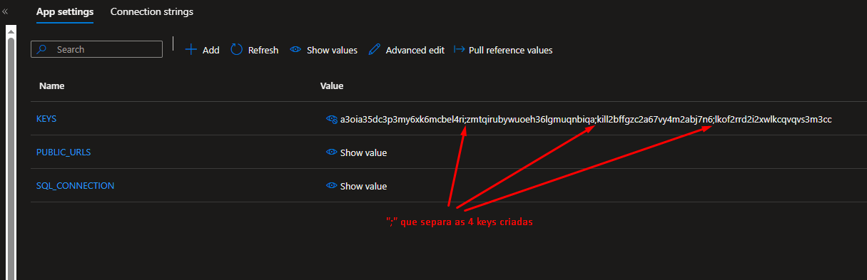 The env KEYS contains the list of generated keys. By default, 4 keys are generated, each separated by a semicolon. Choose one of them to use as a test, and access the url passing https:/../apikey=ChosenApiKey.