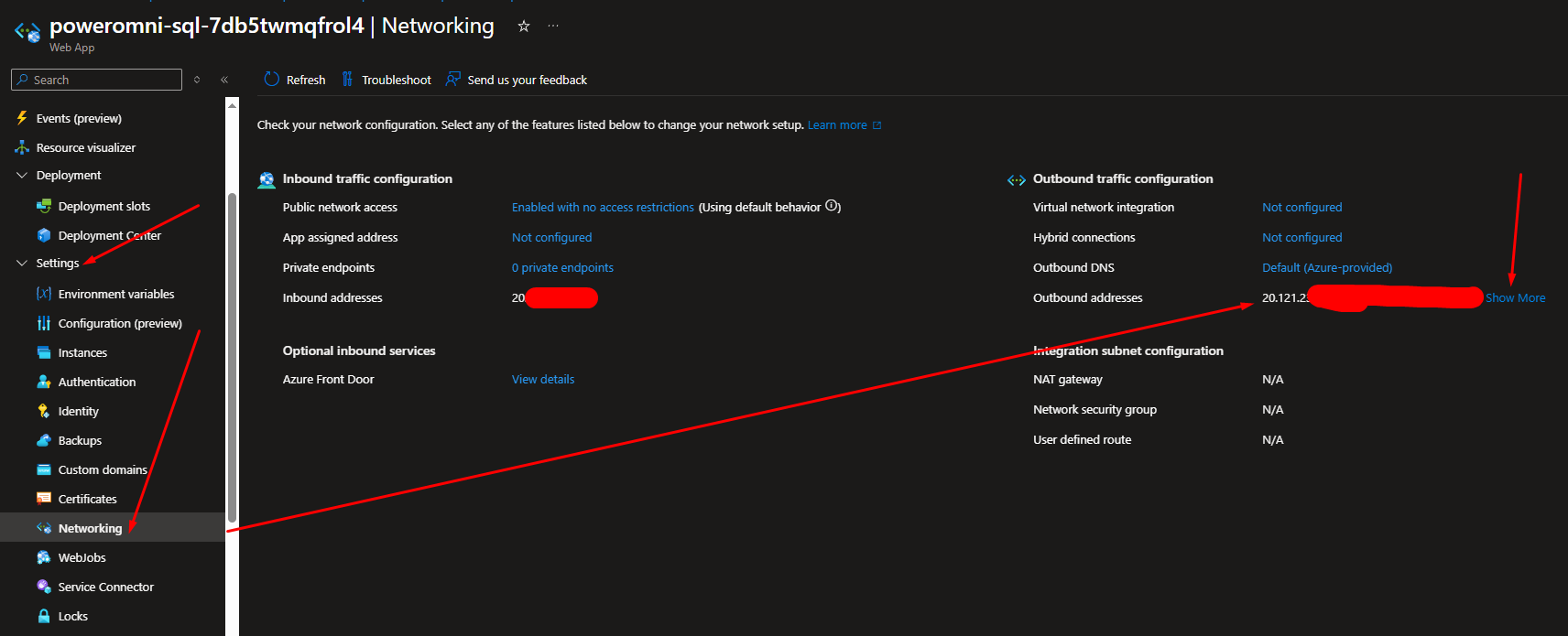 If you need to further isolate IP numbers, you will need to make more advanced network configurations with your App Service. Contact your Azure security team to help you. If you do not have one, you can request consulting from the Azure Brasil team, which is a partner of Power Tuning. Just request it in your support group and we will connect you.