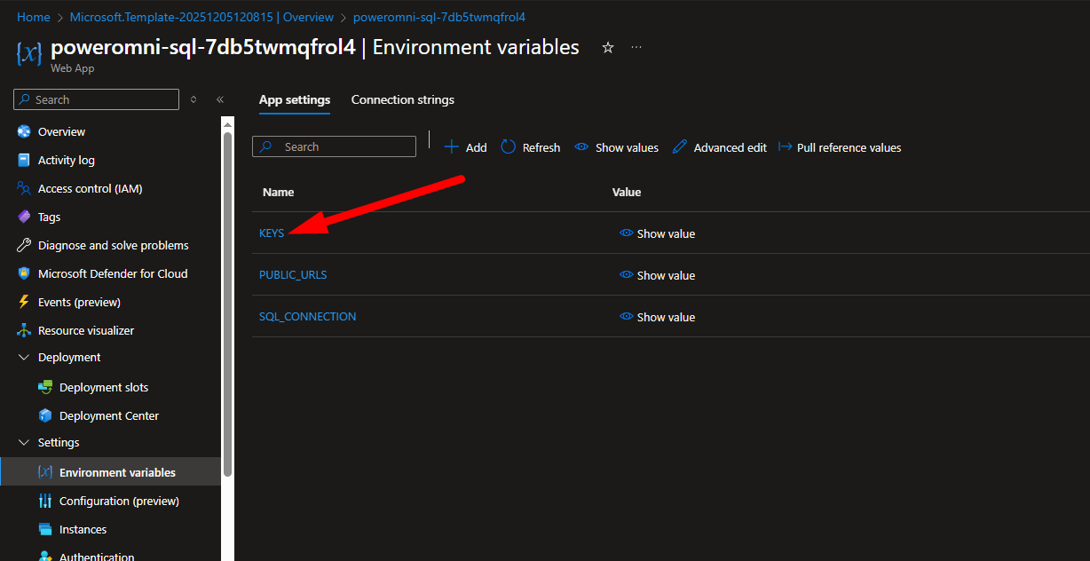 In the example above, the url is: https://poweromni-sql-7db5twmqfrol4.azurewebsites.net/
