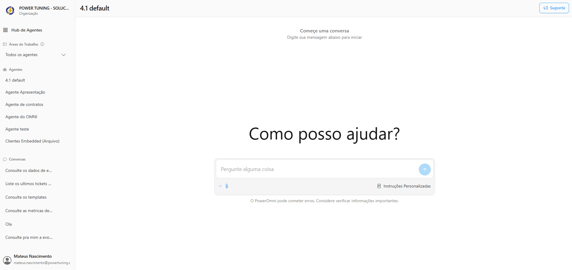 <mark style="color:$primary;">O Power Omni é uma ferramenta poderosa, mas como toda IA, pode cometer erros. Sempre verifique informações importantes e confie em seus dados corporativos indexados.</mark>